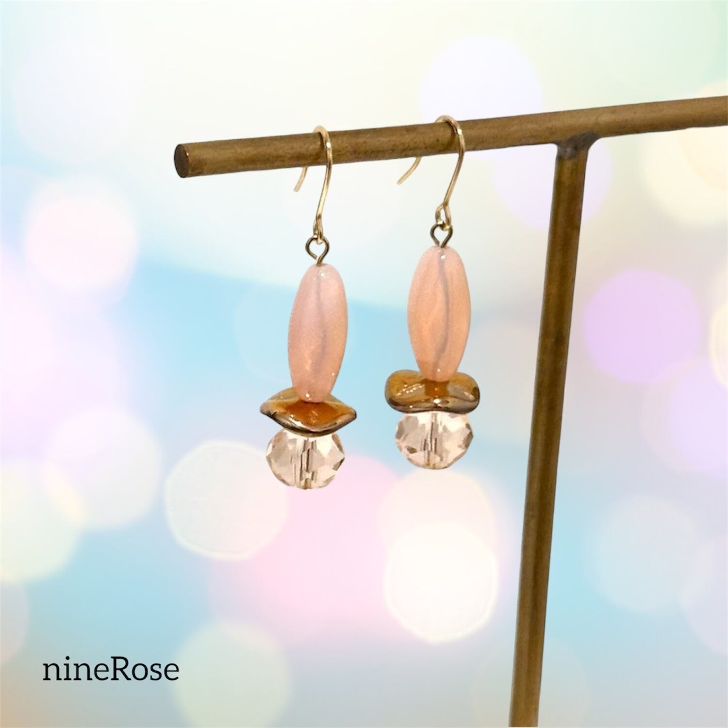 メタリックな輝きを放つめずらしいピンクのガラスビーズ間に挟み、遊び心あるデザインで♡
