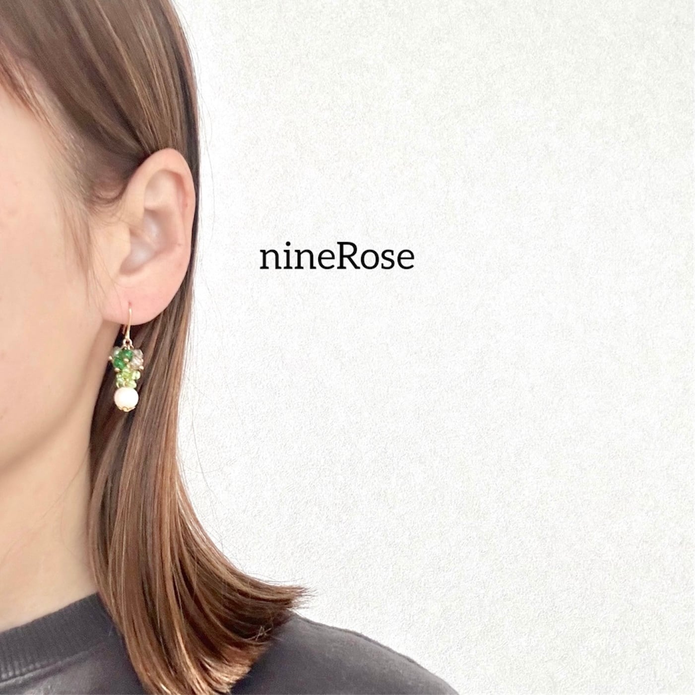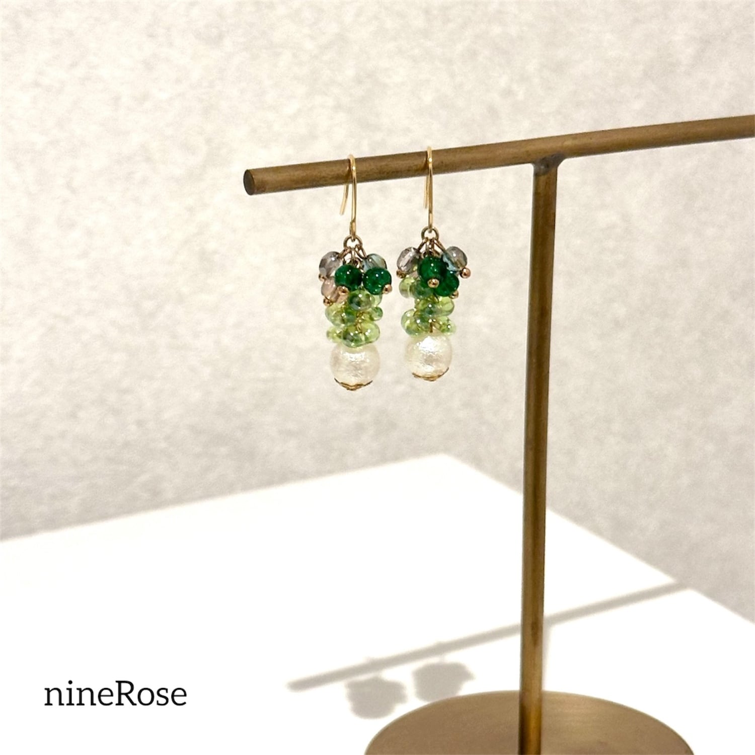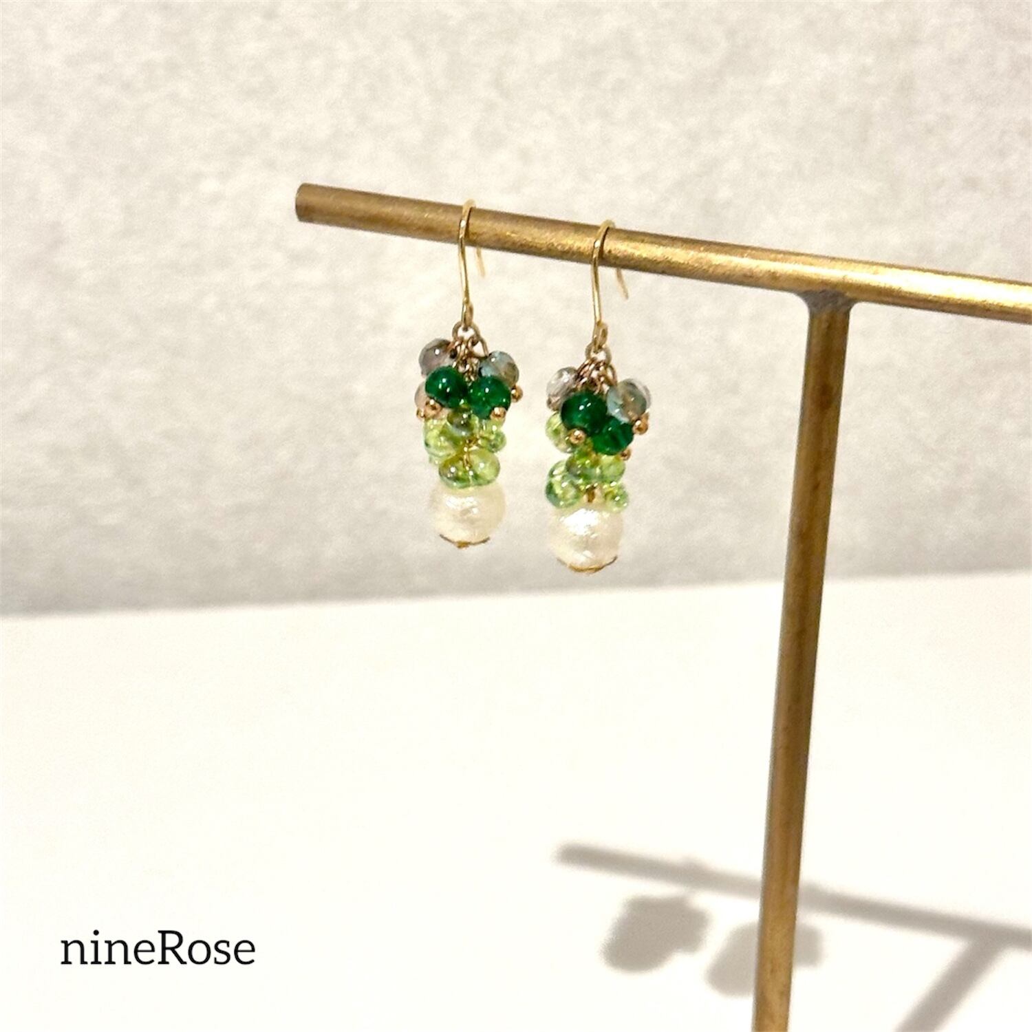小粒のグリーン系ガラスビーズにパールを合わせて♡