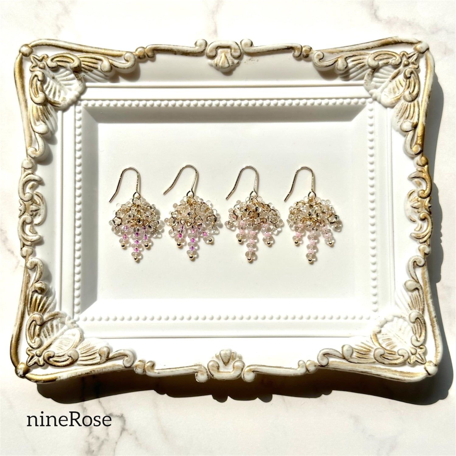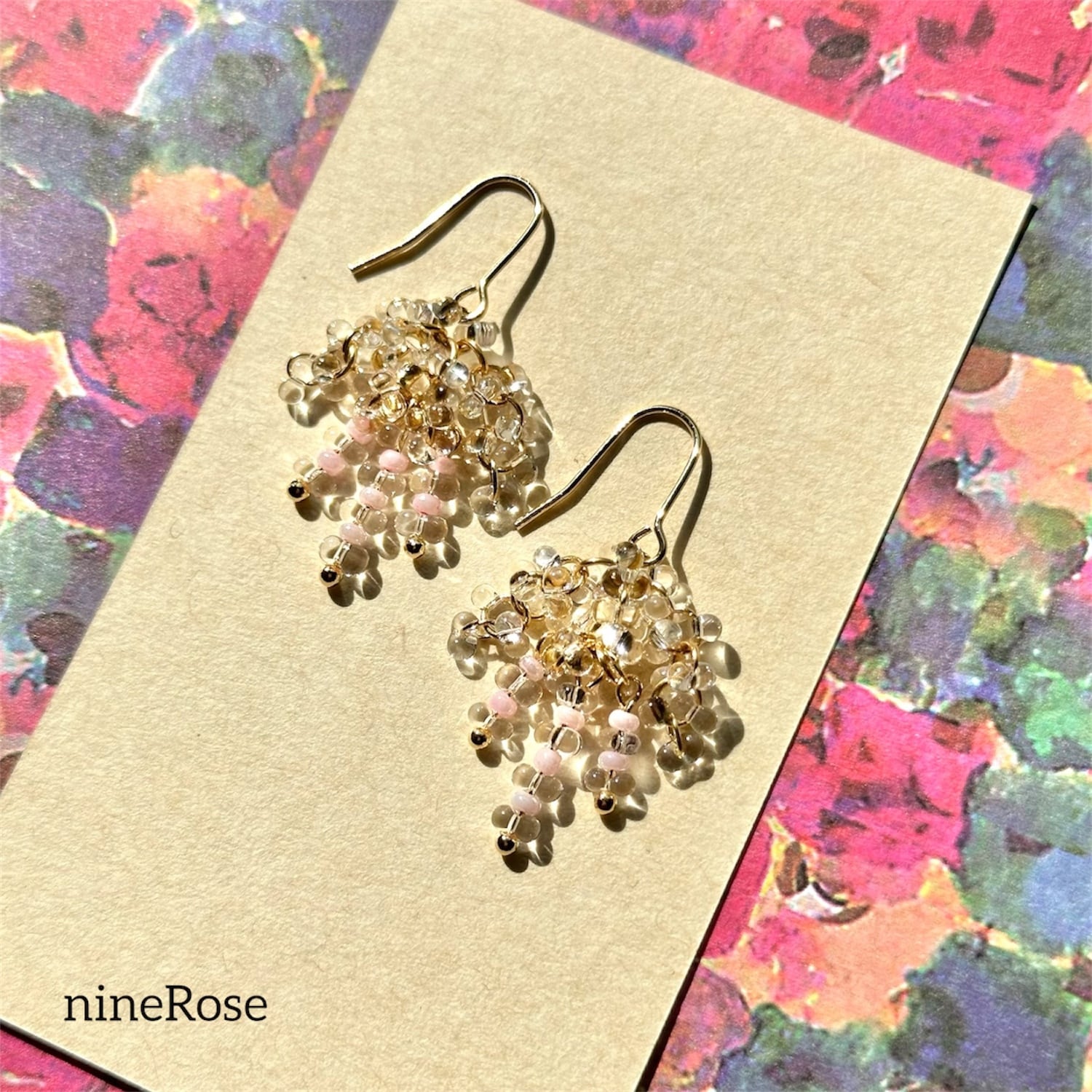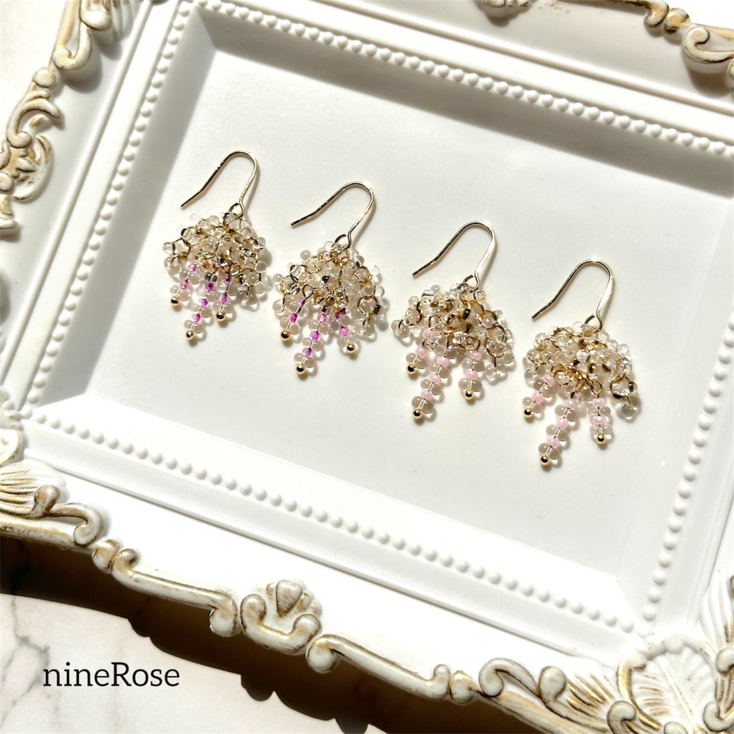 ・ガラスビーズを使用しておりますので優しくお取り扱いくださいませ。