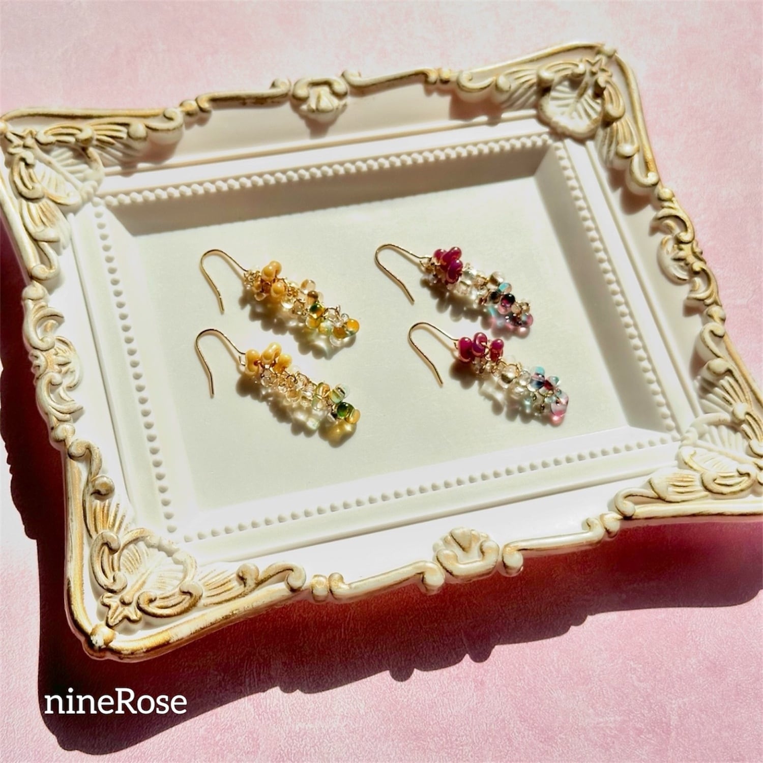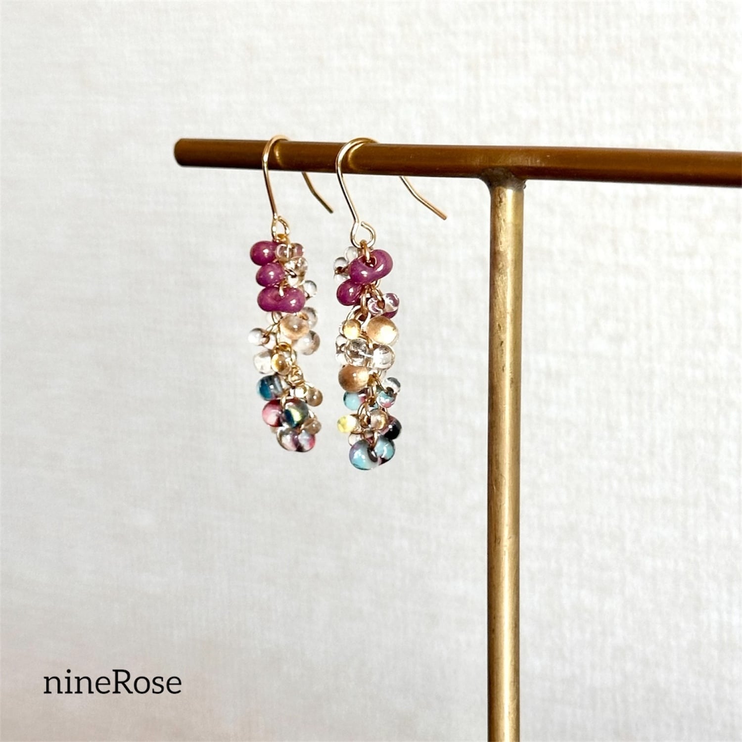 3色のつぶつぶガラスを使用した、グラデーションが綺麗なアクセサリーです。