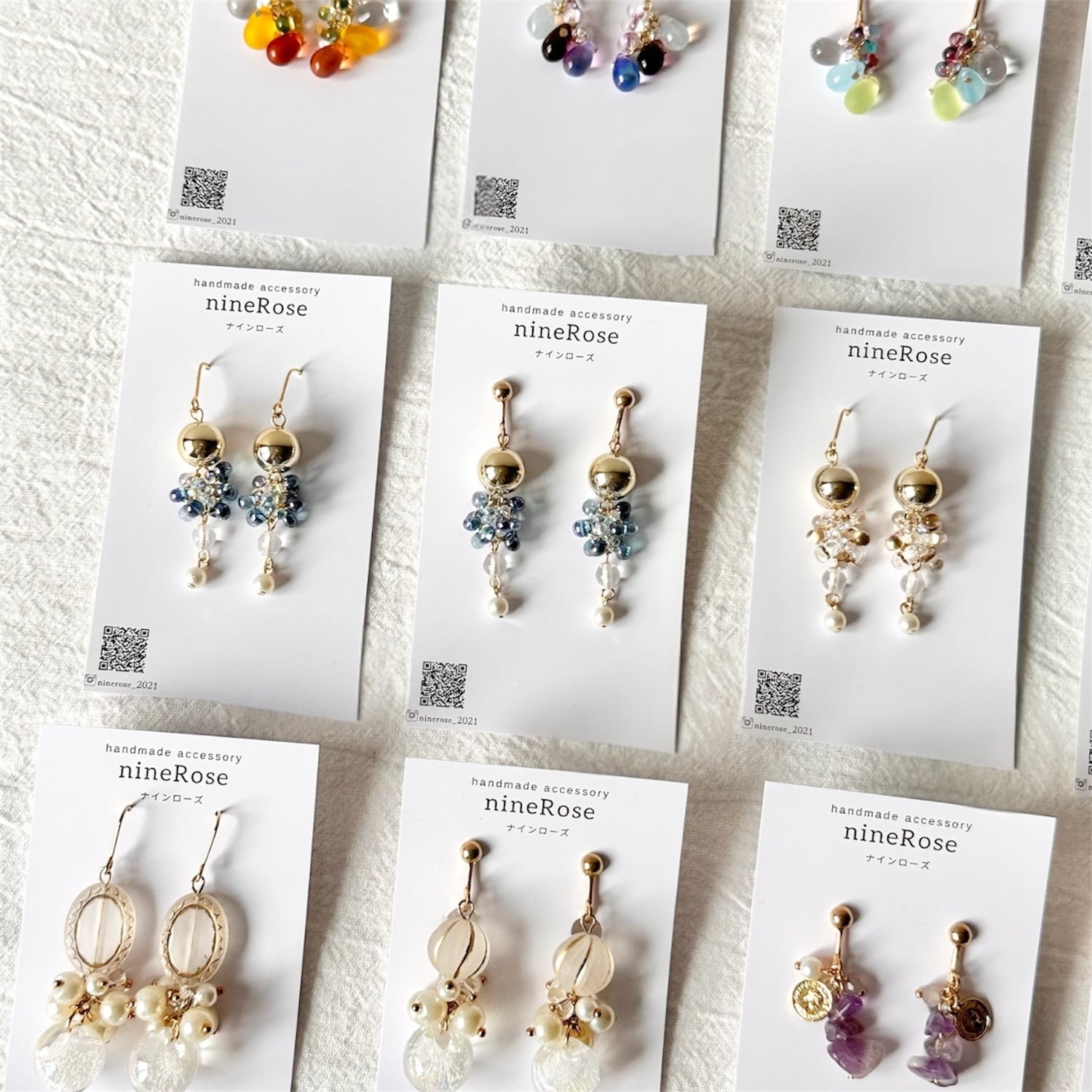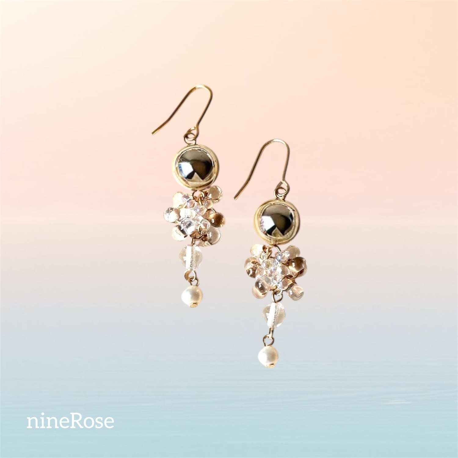 お花に見立てたつぶつぶガラスに、CCBと呼ばれるとっても軽い素材のメタリックビーズと小さなパールを合わせた甘辛デザイン♪