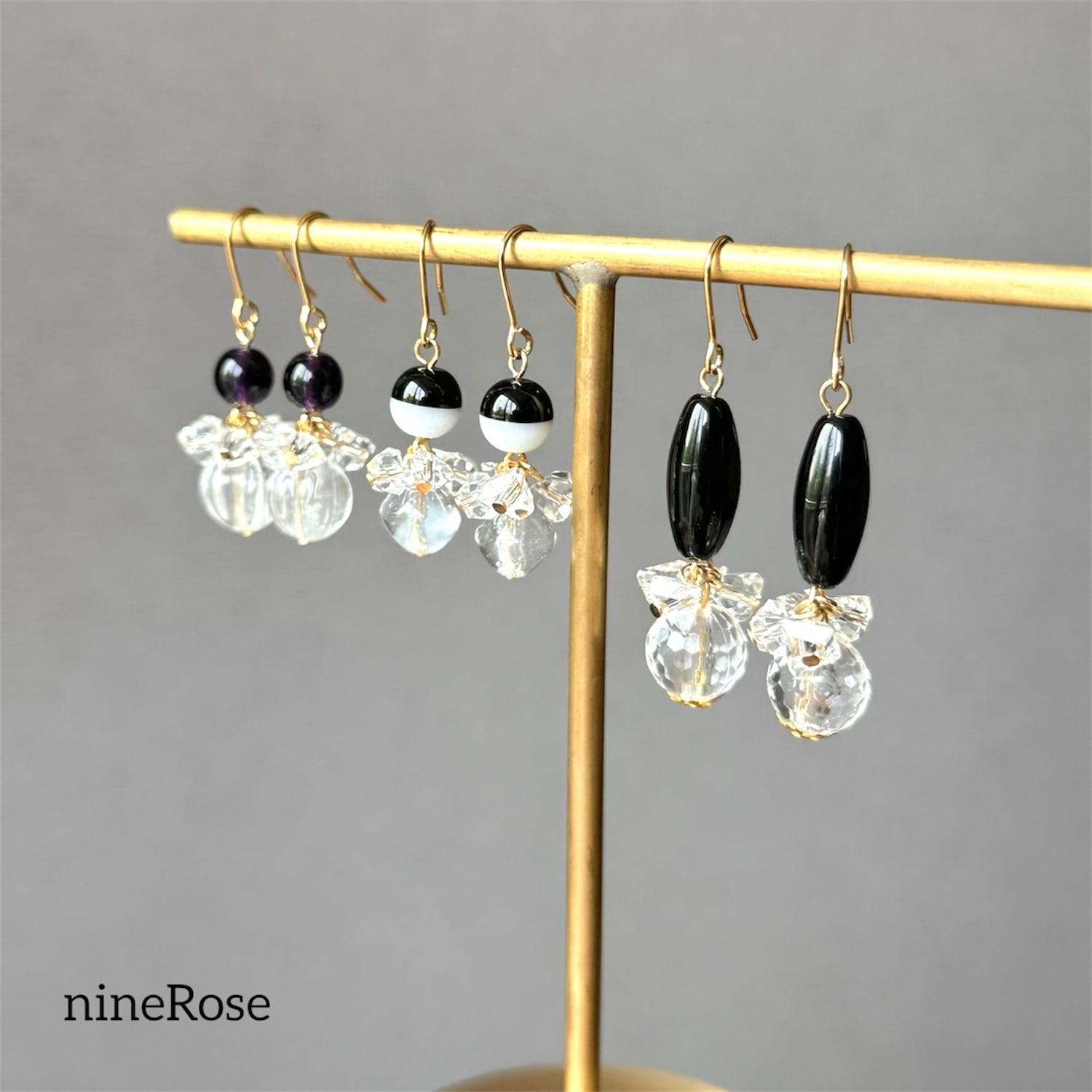 艶やかで滑らかな質感の、ブラックのチェコガラスが主役!