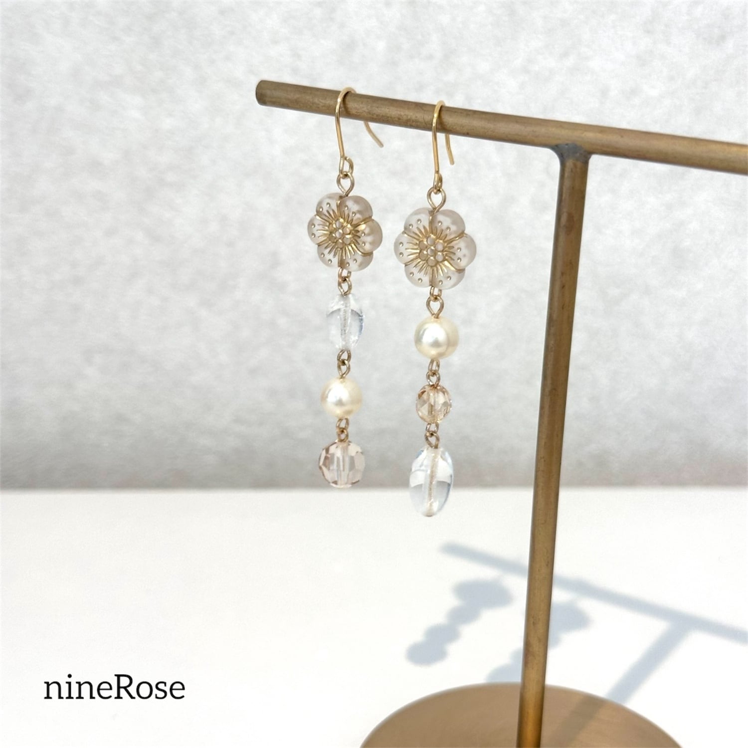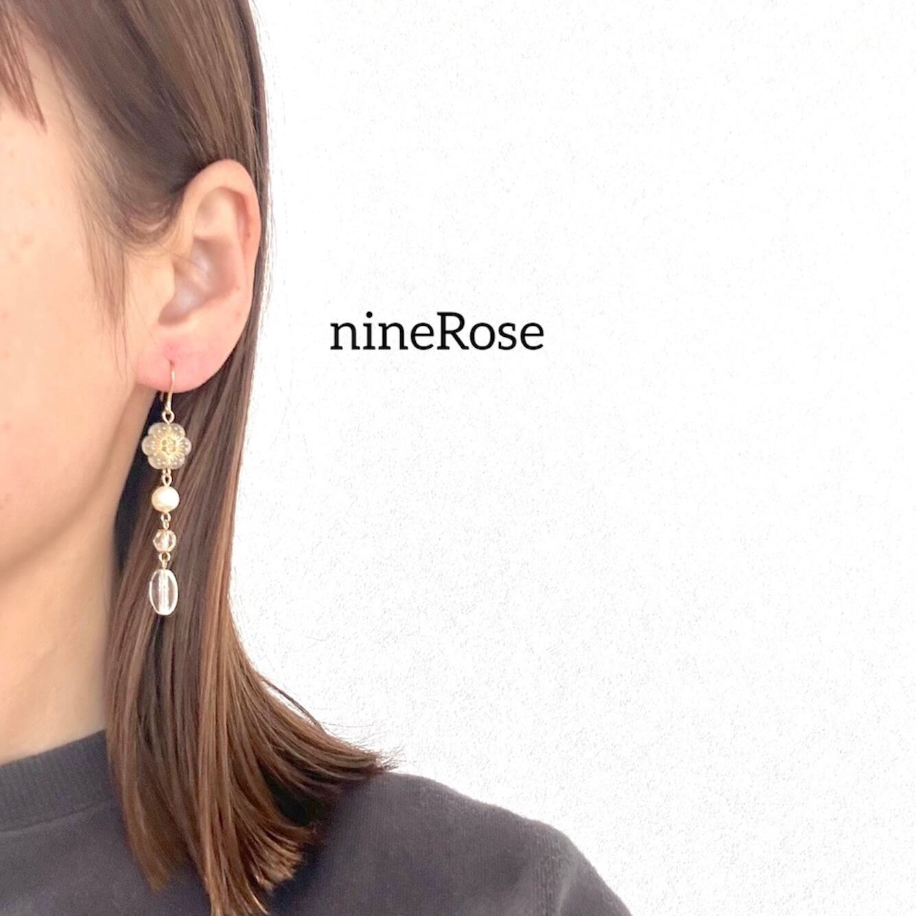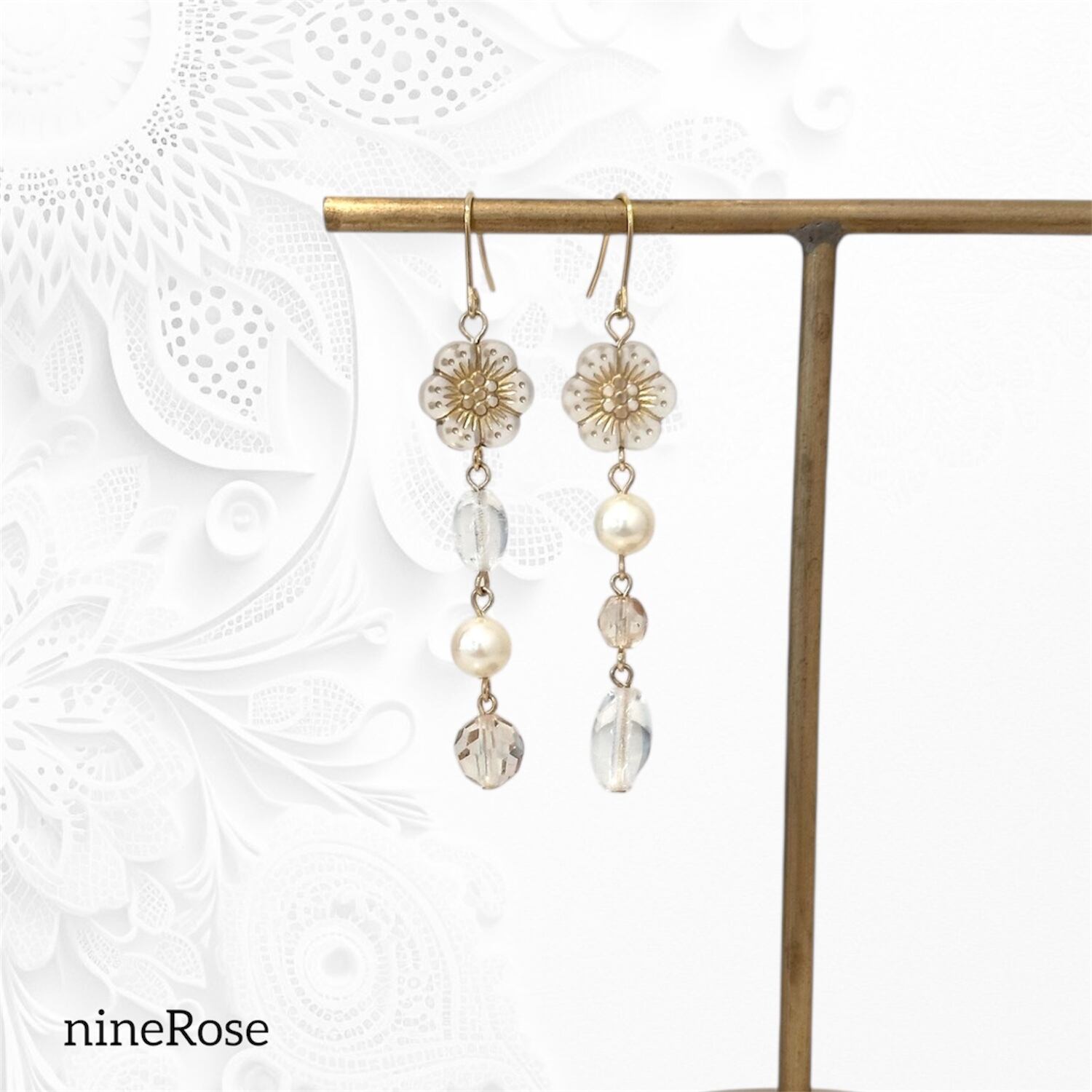 シャンパンカラーとクリアのチェコガラスをアシンメトリーにバランス良く仕上げました。