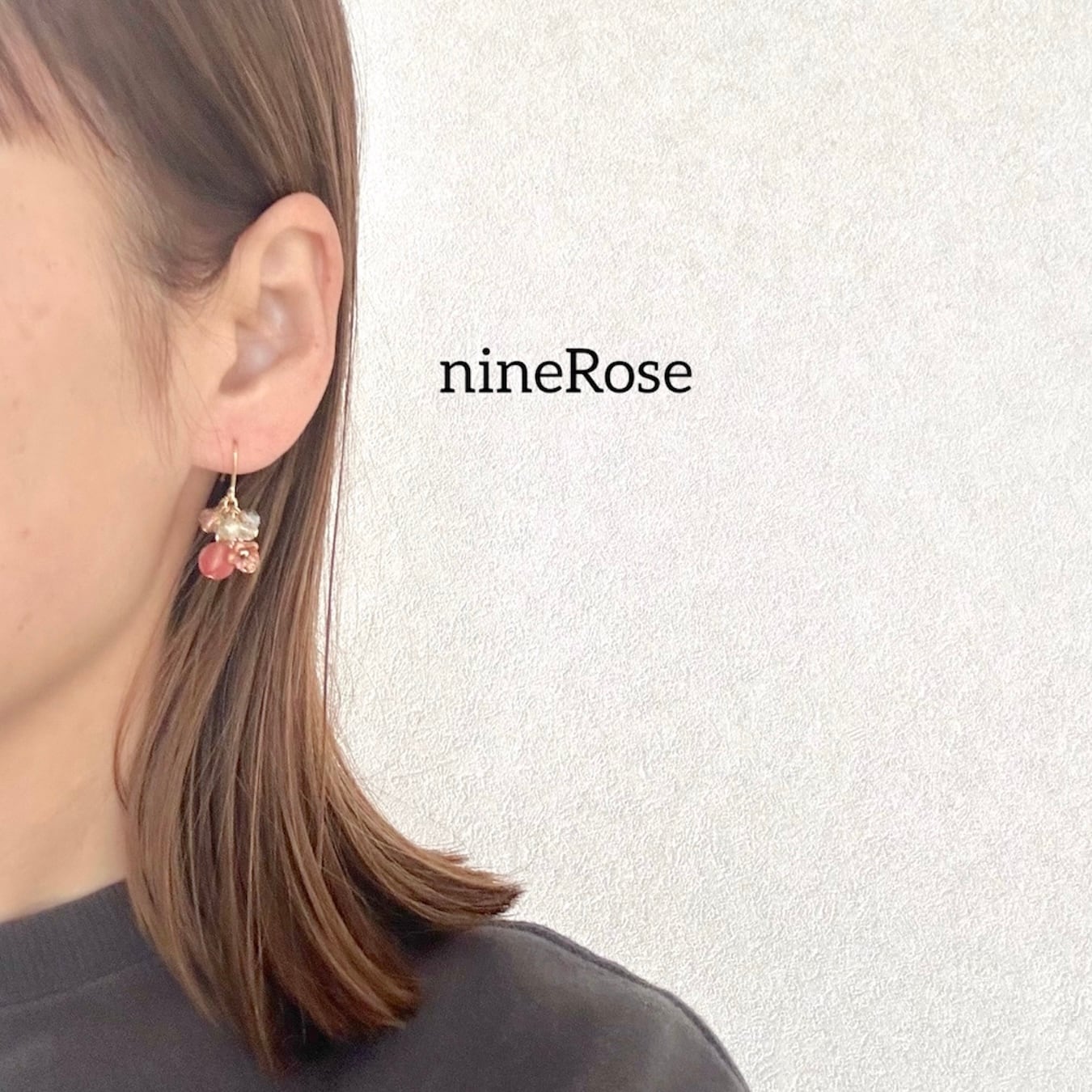 可憐なピンク色のガラスビーズと小花が軽やかに揺れ、耳元を華やかに彩ります。