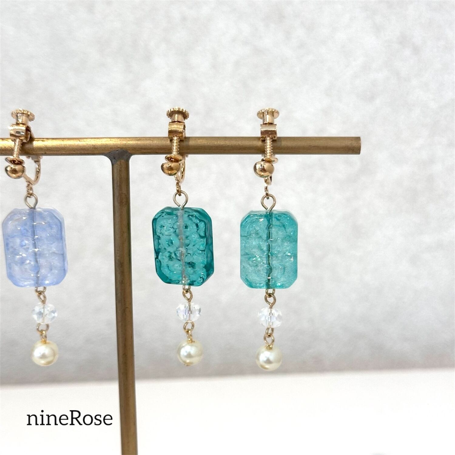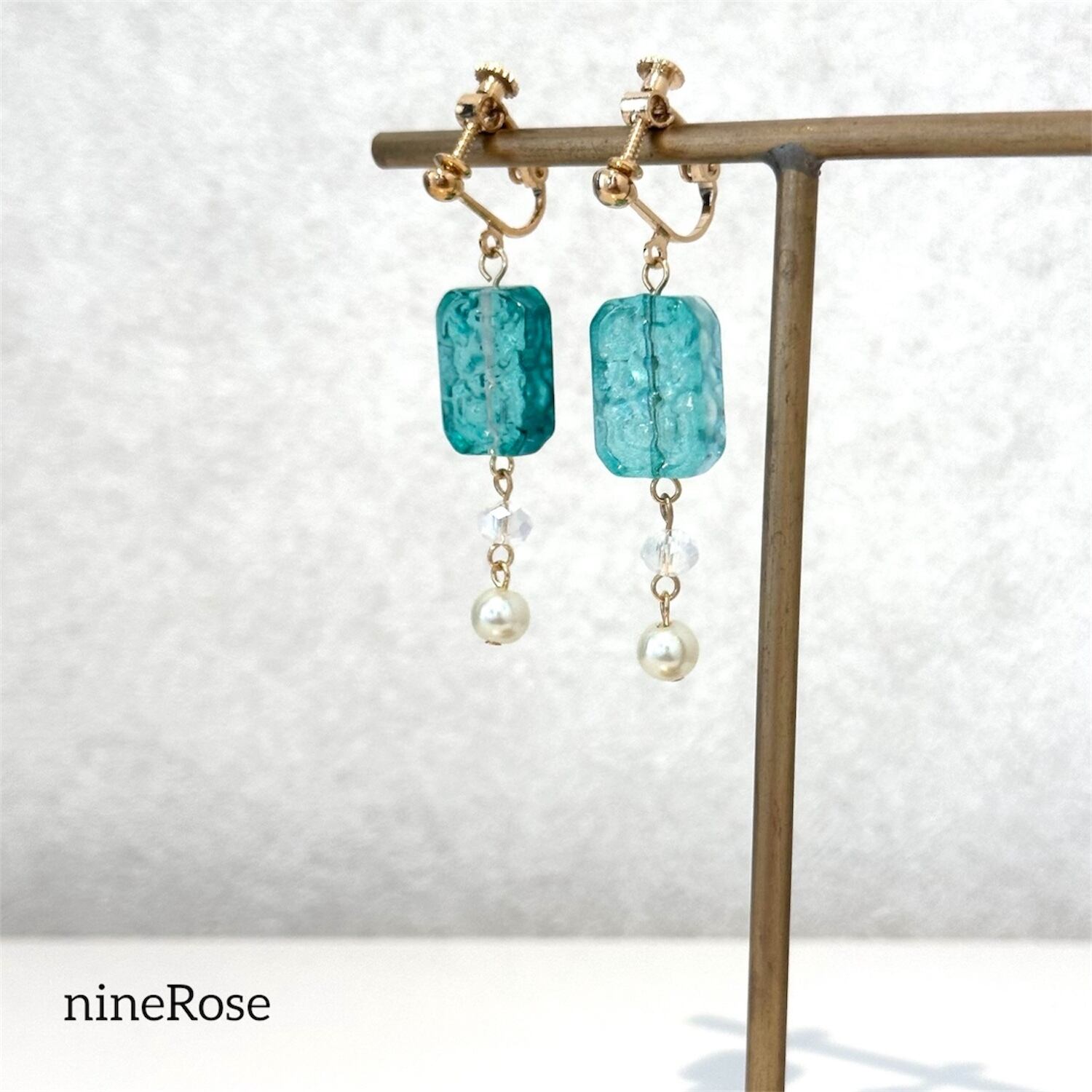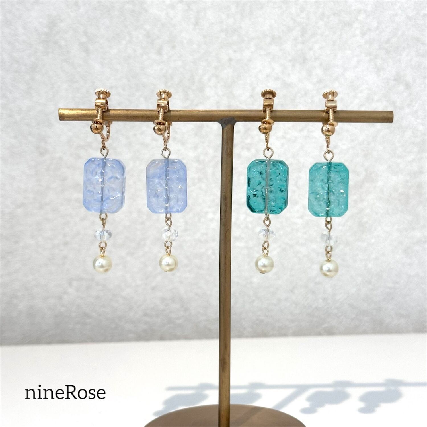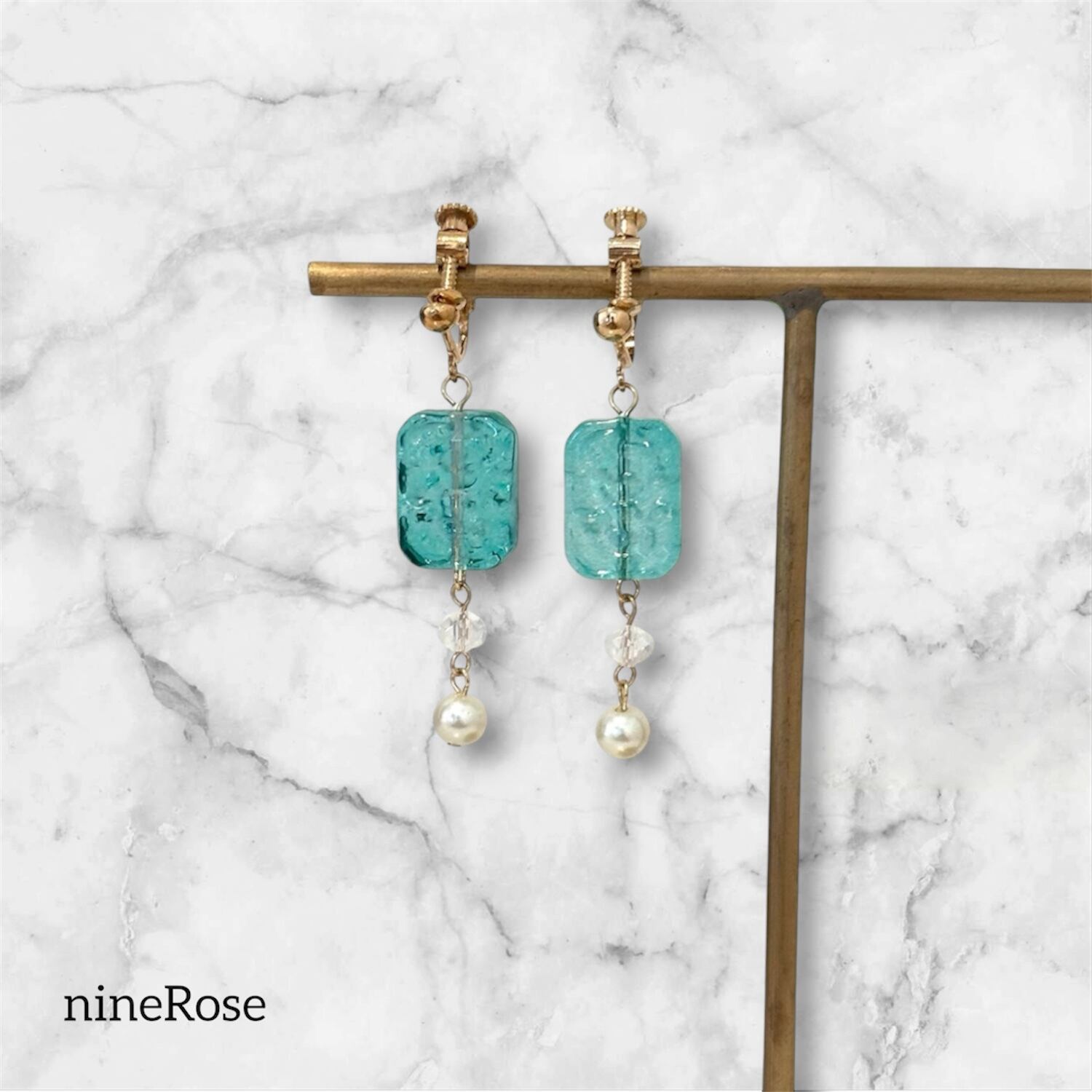 スクエア型のガラスビーズに、優しい光沢を持つパールを組み合わせたデザインが魅力的♡