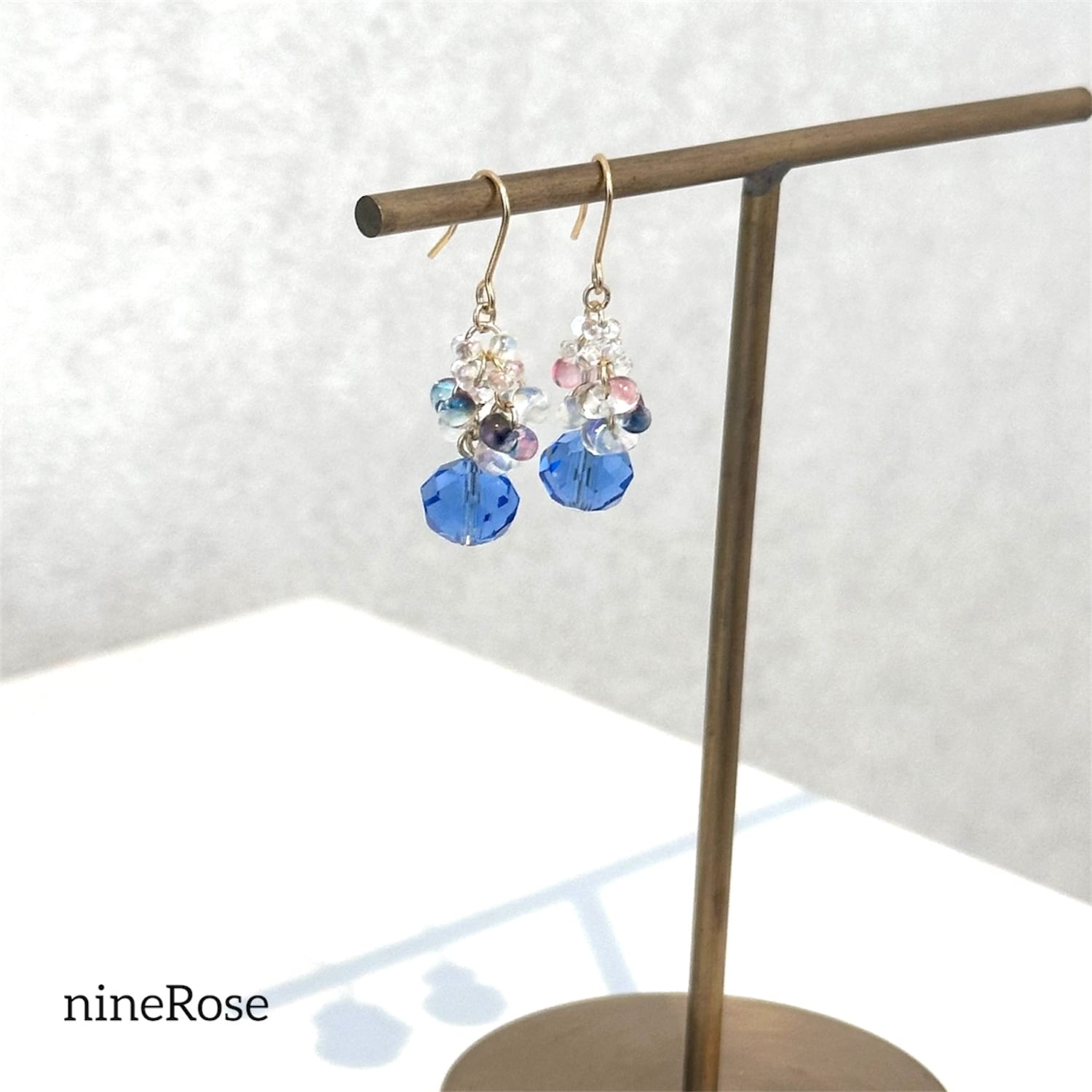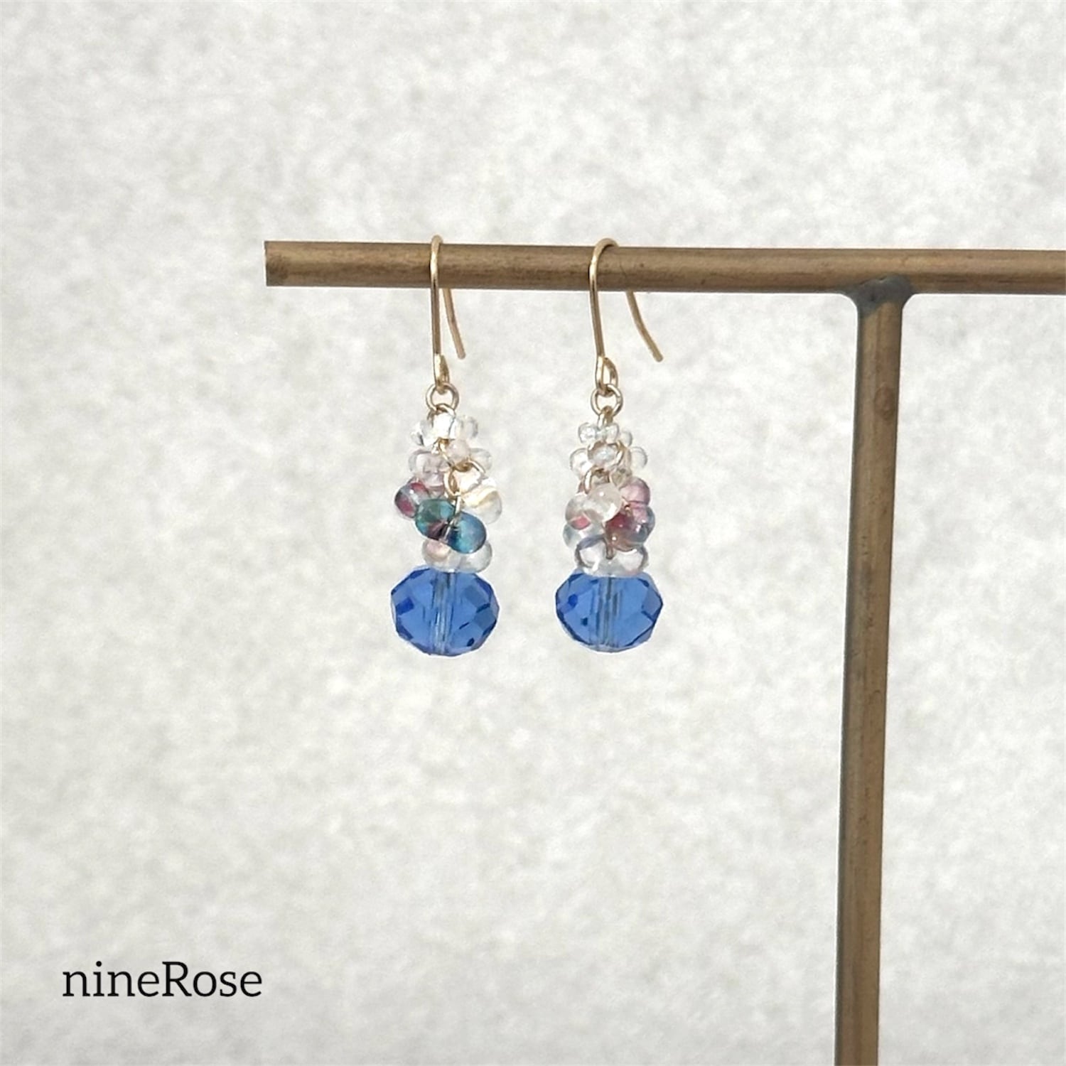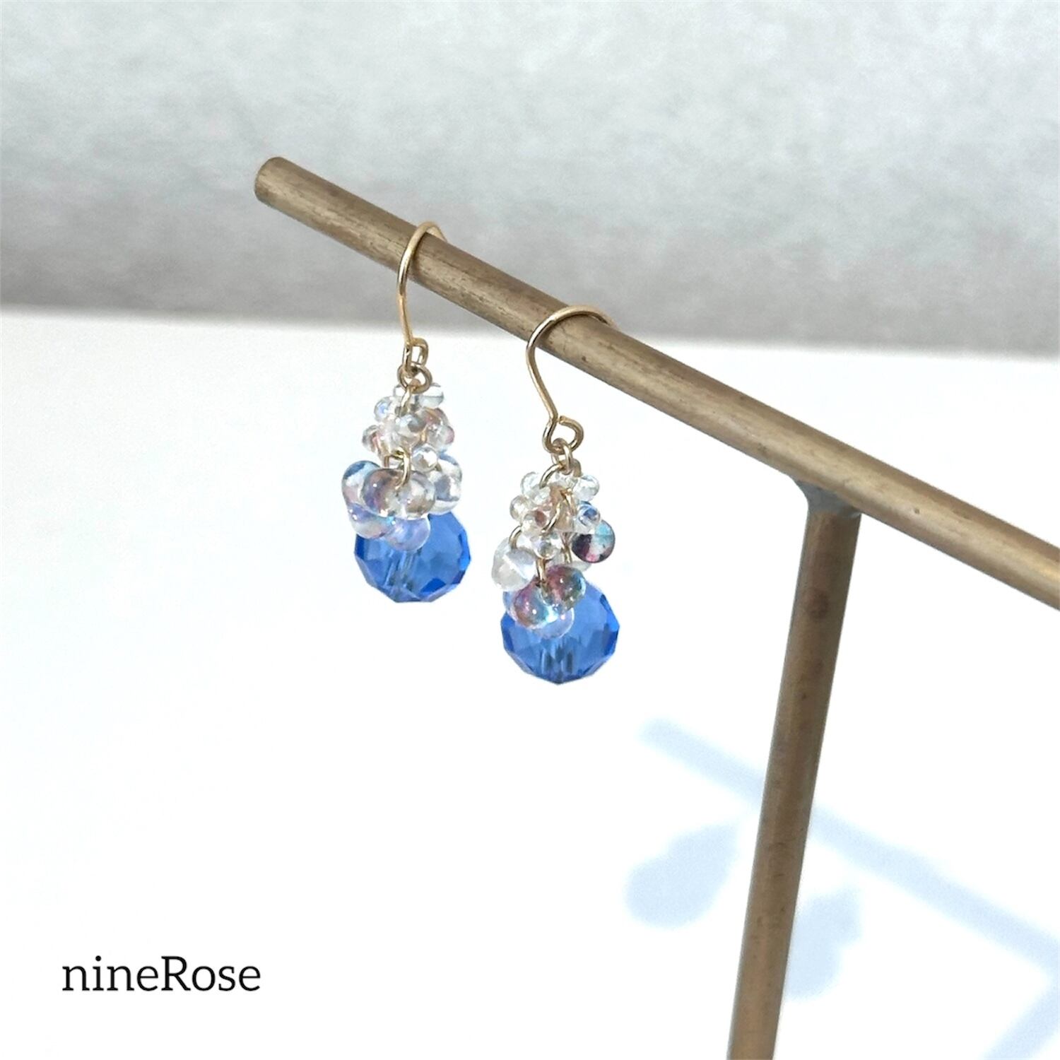 透き通るライトブルーのガラスビーズが涼しげに揺れるアクセサリーです。