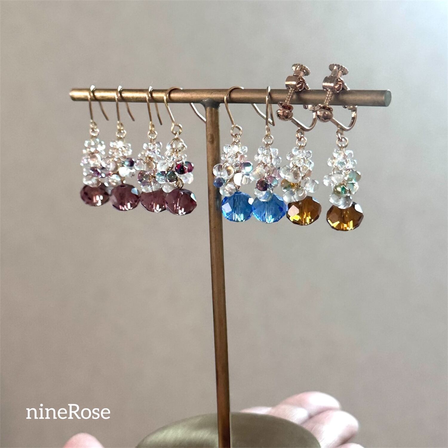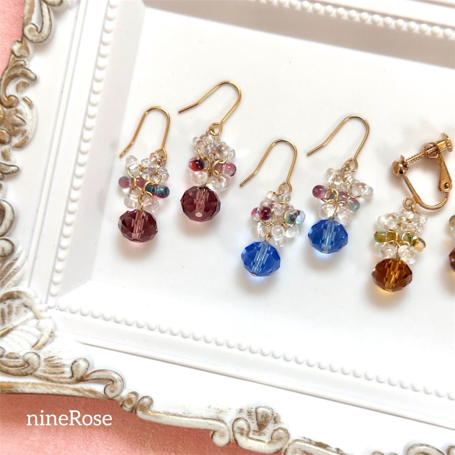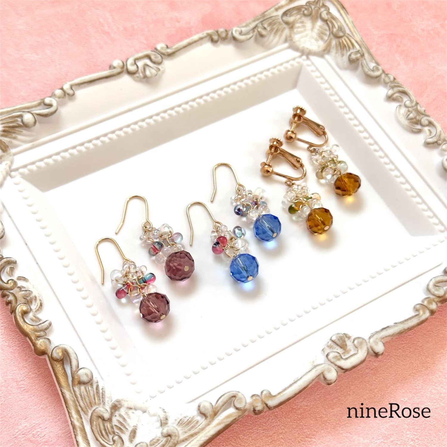 透き通るライトブルーのガラスビーズが涼しげに揺れるアクセサリーです。
